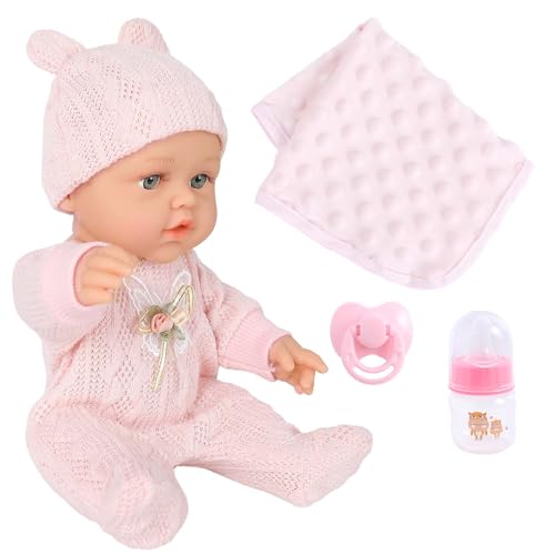 YOUR BABY’S FIRST DOLL SET: The 12″real-looking baby doll playset is a chance for little kids to introduce them to the world of caring and loving. Small in size, soft doll dody making it easy for children to hold, cuddle and carry.Come with feeding bottle,great for pretend play, Encourages holding, nurturing and special care to improve child development and social skills while engaging in pretend playtime