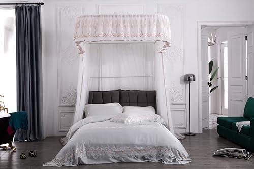 ✔️【Beautiful Design】White & Champagne colored luxury bed canopy adds grandeur to your bedroom.