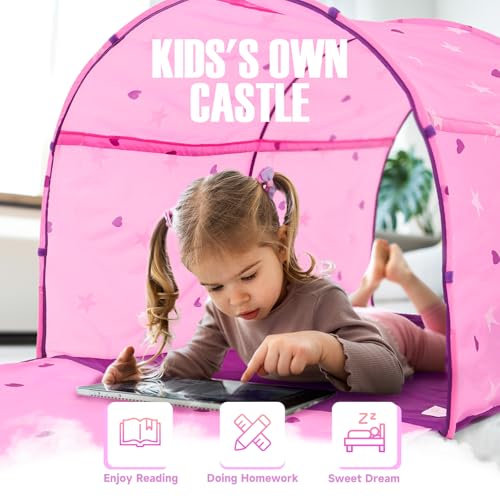 Alvantor 2014 Starlight Bed Canopy Dream Kids Play Tents Playhouse Privacy Space Twin Sleeping Indoor Grow in The Dark Stars Boys Girls Toddlers Pop Up Portable Frame Curtains Pink, Patent