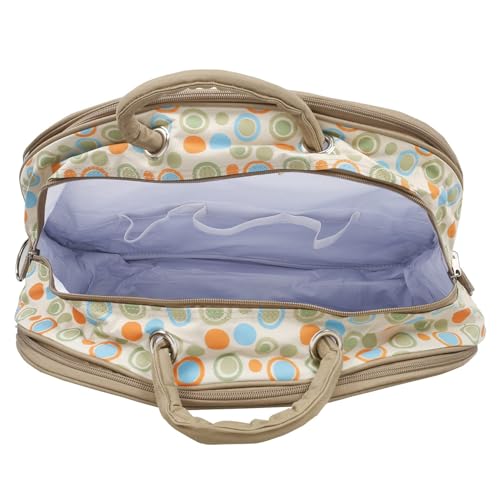 The diaper bag tote is crafted with durable waterproof nylon blend material and interior lining trimmed with easily wipes clean coating. Diaper tote bag offers detailed construction and true hands-free convenience and functionality with adjustable and detachable shoulder strap.