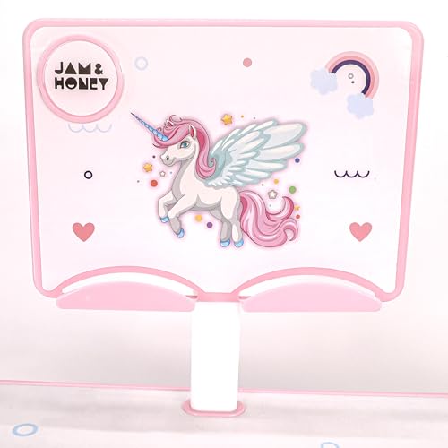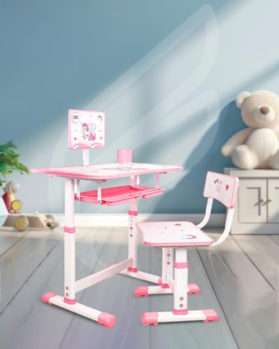 Amazon Brand – Jam & Honey Kids Functional Desk and Chair Set, Height Adjustable Children School Study Table with Book Holder Slot |Age 3+ Years (Pink)
