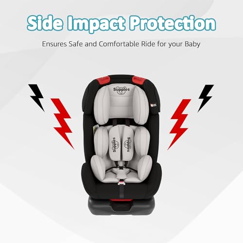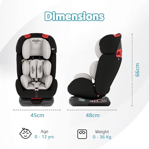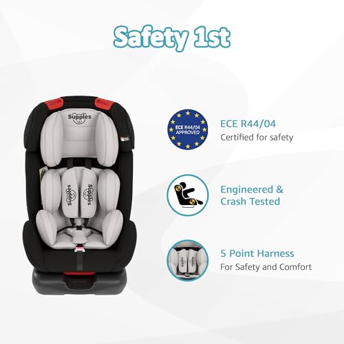 Amazon Brand – Supples Convertible Car Seat for Babies and Kids (0-12 Years) | ECE R44/04 Safety Certified | Forward and Rearward Facing | 3 Adjustable Recline Levels (Black and Grey)