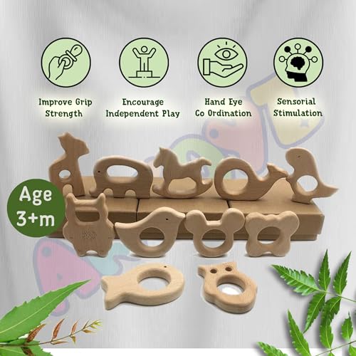 Natural Teething Rings: These wooden teething rings are crafted from neem trees, providing a safe and natural alternative to synthetic materials for your little one’s teething needs.