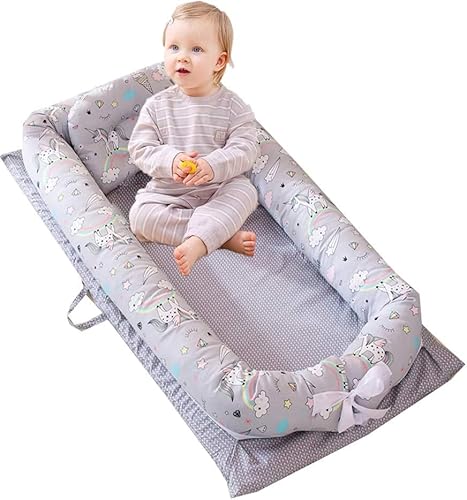 BABIES BLOOM Newborn Baby Bedding Set, Baby Beddings for Newborn, Baby Lounger for Napping and Travel, Baby Crib Set (Unicorn Grey) (90×55 cm) (0-36 Months)