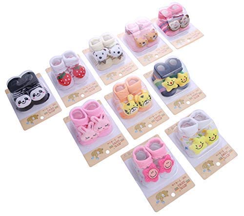 Baby cotton cartoon face socks cum shoes, for babies of 0-6 months and available in multicolour.