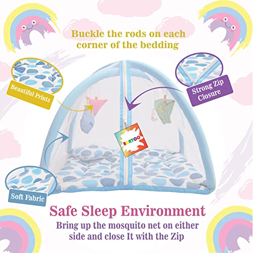 Bantoo Baby Bed New Born Baby Bedding Set | Play Gym | Bed Mattress | Mosquito Net | Hanging Toys | Infants Playmats | Floor Gyms | Sleeping Beds | Cotton | Gift (0-6 M, Blue)