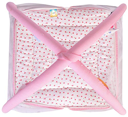 Bantoo Baby Bed New Born Baby Bedding Set | Play Gym | Bed Mattress | Mosquito Net | Hanging Toys | Infants Playmats | Floor Gyms | Sleeping Beds | Cotton | Gift (0-6 M, Pink)