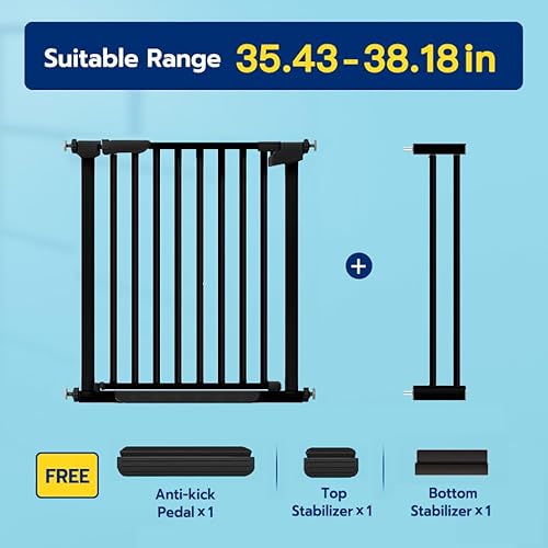 Barricade Auto Close Pet Safety Gate Metal Baby Pet Safety Gate Adjustable, 2 Way Auto Close, Barrier for Stairs, Door and Hallways (Black, 90-97cm)