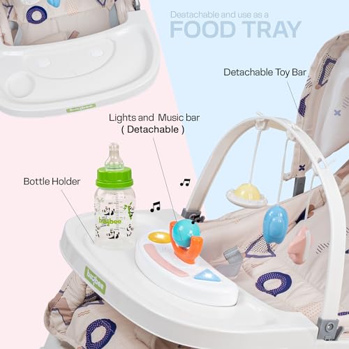 Baybee 5 in 1 Baby Rocker and Feeding Chair for Babies | Portable Rocking Chair for Kids with Parent Handle, Multi Position Recline, Food Tray & Music | Baby Bouncers 0 to 3 Years Boys Girls (Grey)