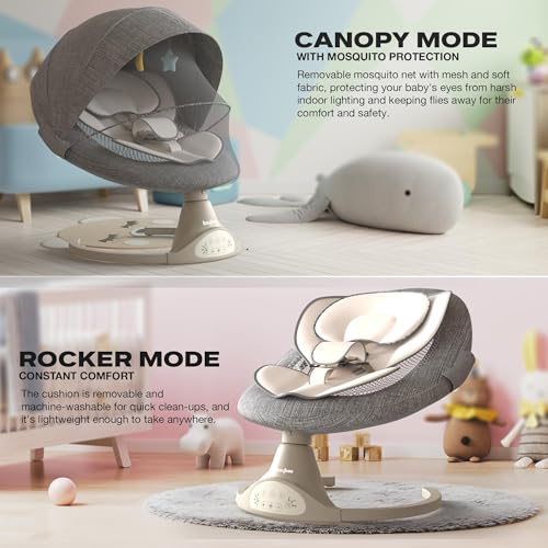 🎶 Gentle Soothing with 5 Adjustable Swing Speeds: The Baybee Automatic Electric Swing Cradle offers five adjustable swing speeds, letting you find the perfect motion to soothe and relax your baby. With the ability to customize the swing intensity, this cradle provides just the right balance to help your little one drift off to sleep or enjoy some calm downtime. The gentle swinging motions are designed to simulate the comforting rhythms babies love, promoting relaxation.