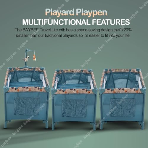 Baybee Kids Foldable Playpen for Babies | Foldable Baby Activity Playards with Rocking Funcion, Hanging Toys with Music & Wheel Lock | Portable Baby Play Area Indoor Setup | Outdoor Play Pen for Baby 0-3 Years (Blue)