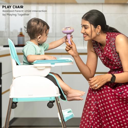 Baybee Nora 4 in 1 Convertible High Chair for Kids with Adjustable Height and Footrest, Baby Toddler Feeding Booster Seat with Tray, Wheels, Safety Belt and Cushion, 6 Months to 3 Years (Green)