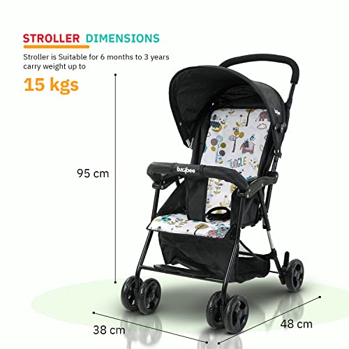 Baybee Tiny Baby Stroller Pram for Baby Boy Girl 0 to 3 Years, Foldable Baby Trolley with 2-Position Adjustable, 3 Point Safety Belt, Baby Pram Stroller for Kids with Canopy & Parent Handle (Black)