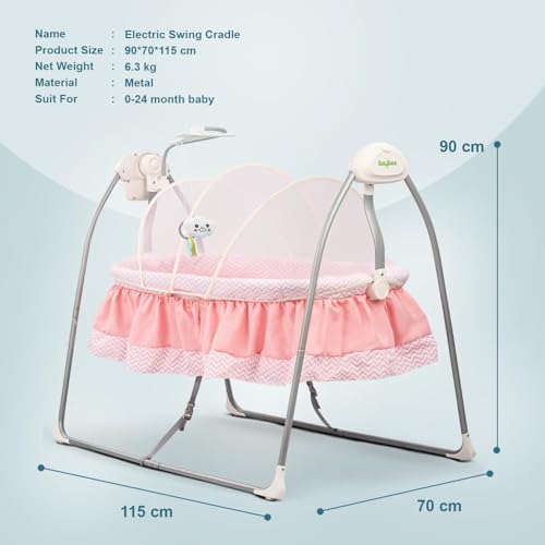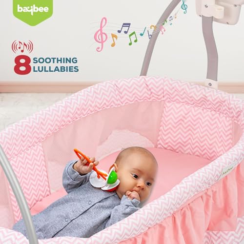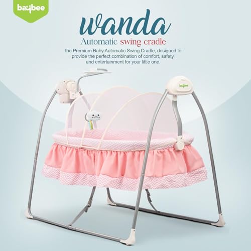 BAYBEE Wanda Electric Baby Swing Cradle for Babies | Automatic Baby Sleeping Cradle with 6 Speed Control, Mosquito Net, Toy Bar & Music | Jhula for New Born Babies | Swing for Kids 0 to 2 Years (Pink)