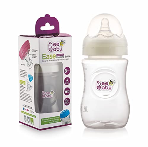 BeeBaby Ease Wide Neck Baby Feeding Bottle with Fast Flow Anti-Colic Soft Silicone Nipple. Infants/New Born/Toddlers. – 300 ML / 10 oz. | 100% BPA Free. (White) 8 Months +