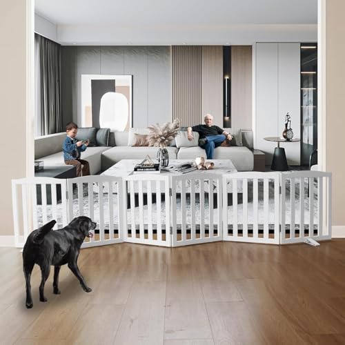 Belief Wood Freestanding Pet Gate, Folding Safety Fence Wooden Kids & Dog Gate with 2PCS Support Feet Ideal for Stairs, Doorways, Halls, Kitchens, Indoors Gates, 24″(60 Cm), White (6 Panel)