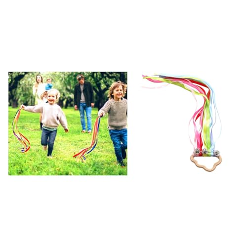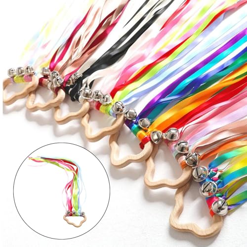 bnf Montessori Inspired Sensory Ribbon Hand Handmade Wooden Toy Baby Gift J | Baby | Toys for Baby | Other Toys for Baby | 1 Piece Rainbow Handbells Ribbon Streamer