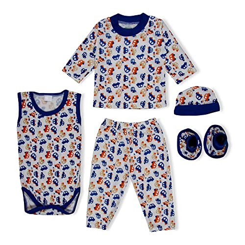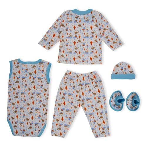 Bold N Elegant Full Sleeve Tshirt Onesies with Pyjama Pants and Beanie Cap Layette 3 Pc Bodysuit Gift Set for Newborn Baby (9-12 Months, Blue)