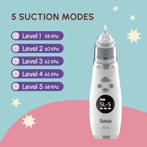 5 SUCTION LEVELS & LED DISPLAY – Pick from 5 suction levels to clear your baby’s nose just right, and keep track of everything with the bright LED screen that shows your suction power and battery life all in one handy spot. Take it Anytime Anywhere, Lightweight, Compact, USB rechargeable, and travel-friendly this device fits perfectly in a diaper bag for travel.