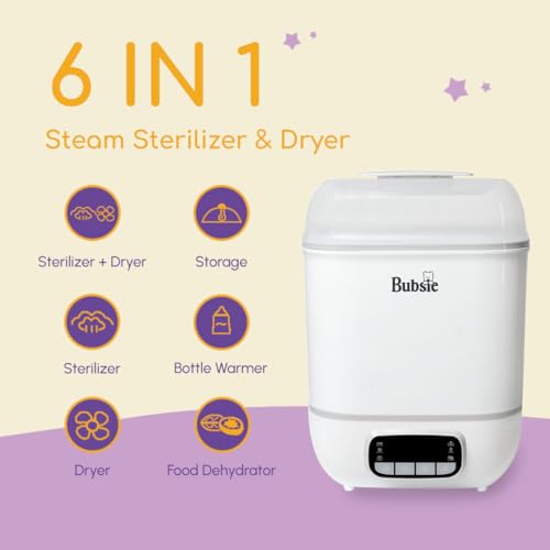 COMPLETE 6 in 1 SOLUTION – Our Sterilizer provides 6 in 1 solution. It Sterilizes, Dry, Warms Bottle, Keeps the Bottle warm, Dehydrate food, and stores baby bottles, pacifiers, breast pump parts, and more in one convenient appliance. Designed for busy parents, it combines powerful sterilizing with effortless drying for ultimate hygiene.