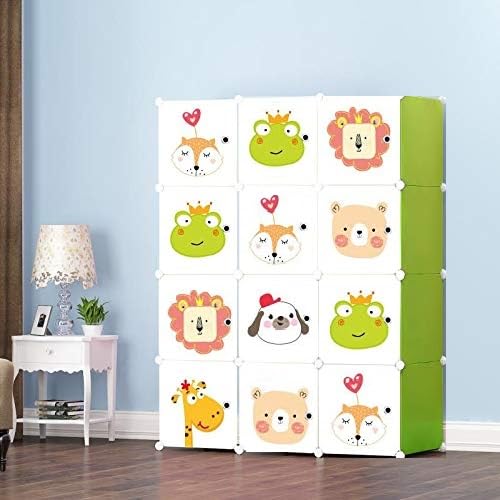 BucketList Baby Wardrobe Organizer – 12-Door Plastic Sheet Kids Wardrobe Rack for Clothes, Kids Furniture, Living Room, Bedroom, Small Accessories (Green Cartoon Print)