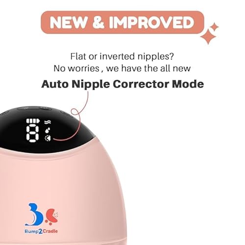 Bump2Cradle | ISO 9001:2015 Certified| No 1 Brand by Doctors and Lactation Experts |Automatic Nipple Corrector Patented Technology |Pump N Go Pro|Model: (B2C 117/Pro) Electric Breast Pump|Soft Cushion|17, 19,21 & 25 mm flanges |3 Modes & 9 Suction Levels|Usb Charging & Cordless|Queit 1 Yr Warranty | Storage bottle with Cap | Free lactation consultation | FREE premium Carry Case