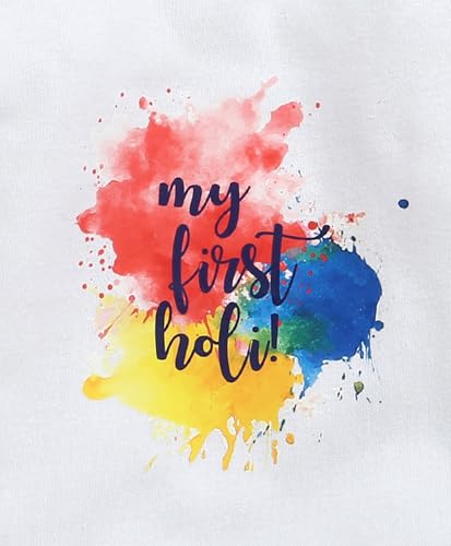 BUMZEE Unisex Baby Premium Cotton My First Holi Bodysuit White – 6-9 Months