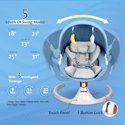 [User-Friendly and Effortless Touch Panel Controls]: Enjoy hassle-free installation and operation with the intuitive touch interface. Set up the swing in minutes without the need for extra tools.