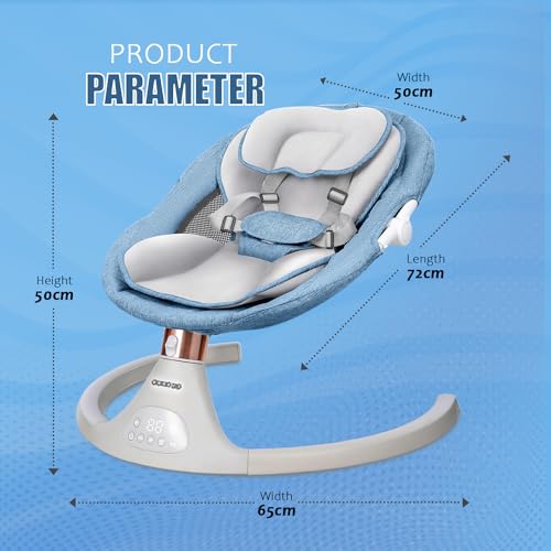 CAREIT Baby Electric Swing Rocker with Upgraded Base, Touch Panel, Adjustable Backrest, Safety Belt, Mosquito Net Baby Swing for Ultimate Comfort and Convenience – Blue Color