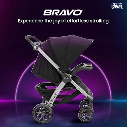 Chicco Bravo Baby Stroller with Adjustable Handle & One Hand Smart Fold|Large Storage|Birth to 22kgs Boys & Girls I Wheels with Suspension|Extendable Canopy |Child & Parent Tray|Black