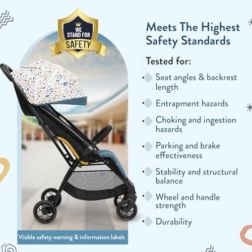 Chicco Glee Stroller I Compact Easy Foldable Baby Stroller Pram I with Soft Padded Seats I Canopy and Practical Mesh I 0-5 Years I Window On Canopy (Glee Uneven Teal Stroller)