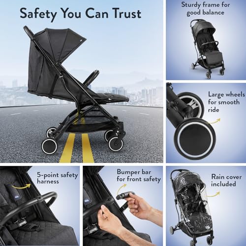 Chicco Trolleyme Stroller with multilevel backrest adjustments | Carry stroller like Trolley|0 to 3 years I Bumper safety bar |Pram With Large Canopy and Rain Cover| adjustable leg rest (Stone, Black)