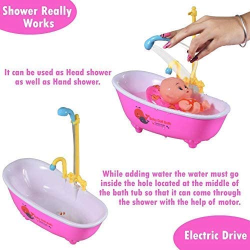 CLUBX Baby Doll Bath time Set – Real Bathtub with Detachable Shower Spray and Accessories for Kids Pretend Play