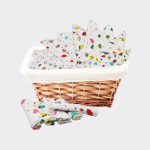 COCOSHELL Hosiery Cotton Premium Baby Washcloth, Washable, Reusable, Absorbent, Extra Soft Face Towel for Babies (Pack of 5) Vibrant Prints (Print & Package May Vary)