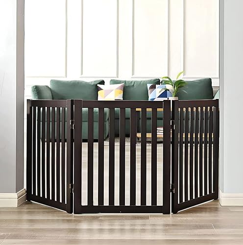 CraftLense Foldable Safety Gate – Wooden – Freestanding – Foldable Pet Fence for Doorways and Stairs – Ideal for Kids and Dogs 3-Panel Measures L-54 x H-22 inches (Brown-3P)