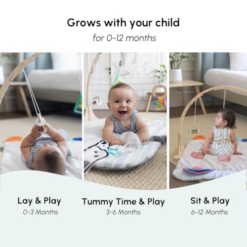 NEWBORN BABY ESSENTIALS: The play gym is designed to provide sensory stimulation and promote motor development from 0-12 months. Discover multiple ways to encourage tummy time, grasping, visual stimulation, and discovering hidden objects.