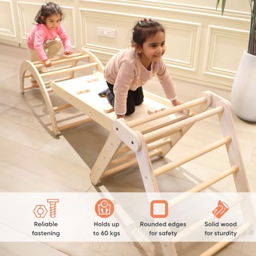 Curious Cub Pikler Triangle Set for Kids 1-6 Yrs | Montessori Learning Toy with Arch, Ramp, & Climbing Triangle | Transformable Climbing Toy, Indoor Playground for Baby | Indoor Slide and Climber Ramp