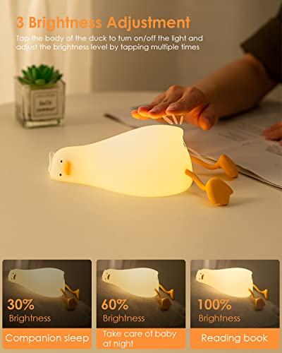 Cute Silicone Duck Night Light, 3 Level Dimmable Touch Control Rechargeable Beside Nursery Lamp, Squishy Kawaii Stuff Desk Room Decor, Nightlight for Breastfeeding, Toddler, Baby, Kids, Girls Gifts