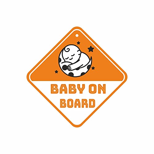 CVANU PVC Sticker Baby On Board Sleeping Baby Vehicle Decal, Window Hanging Safety Sign for Car – Orange Colour Size(6inch x 6inch) (Pack of 2)