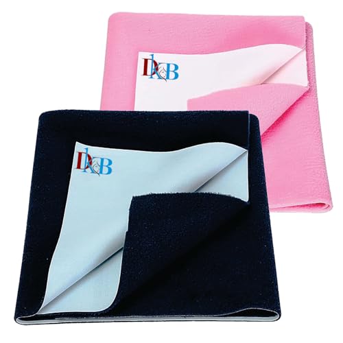 DKB Waterproof Anti-Piling Fleece Extra Absorbent Quick Dry Sheet for New Born Babies, Bed Protector Mattress Medium Size 100x70cm Pack of-2 Pcs [Color- Navy Blue & Pink]