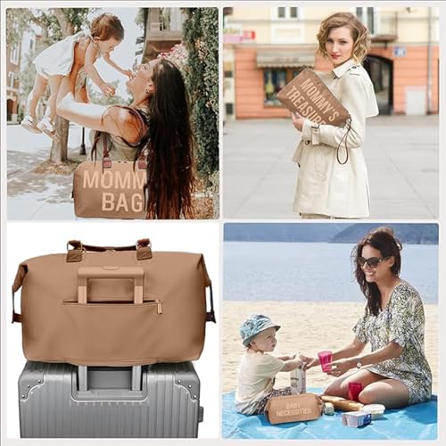 Dravina Diaper Bag for Moms, 5-Piece Set with Changing Pad, Pacifier Holder, 2 Storage Pouches & Luggage Sleeve, Stylish Maternity Backpack for Travel, Baby Essentials Organizer (Khakhi)