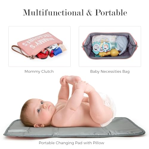 【PREMIUM 5-PIECE SET】 : Elevate your diaper bag game with our premium 5-piece set, designed to provide ultimate convenience and functionality for modern moms. With two additional storage pouches, a nappy changing pad, a pacifier holder, and a luggage sleeve, you’ll have everything you need to stay organized and prepared for any outing with your little one.