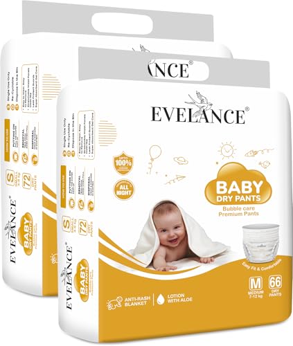 Evelance Premium Baby Pants, Size M, 132 diapers, an anti-rash blanket, for 7-12 kgs baby, easy fit and fast absorption(Pack of 2)