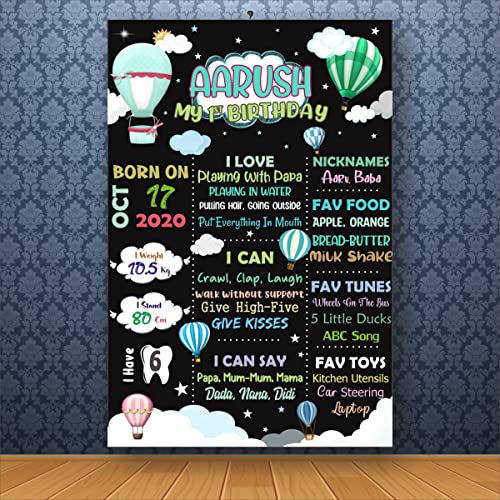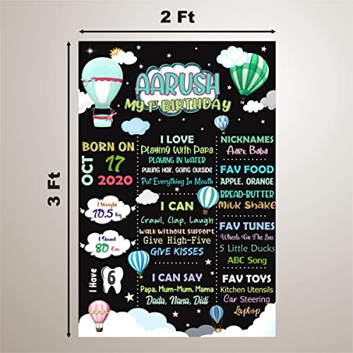Express-O-Board Personalized Baby Birthday Digital Rollable Chalkboard (2 FT x 3 FT) Based on Boss Baby Theme (HOT AIR BALLOON)