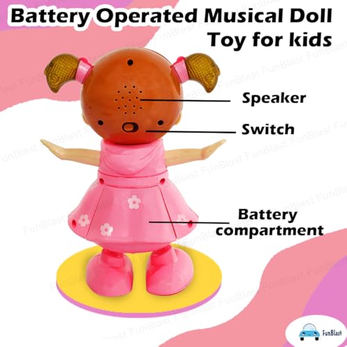 FunBlast musical dancing baby girl toy for kids is enabled with light, music walking and swinging function.