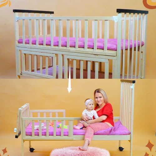 Versatile Baby Cot with Multiple Features – This wooden cot includes a comfortable mattress and seamlessly attaches to the parent’s bed with foldable sides for easy access. Designed to grow with your child, it adapts to their needs from infancy to toddlerhood, offering long-lasting value.