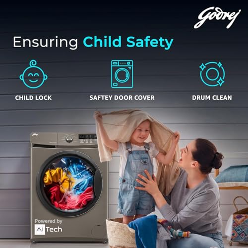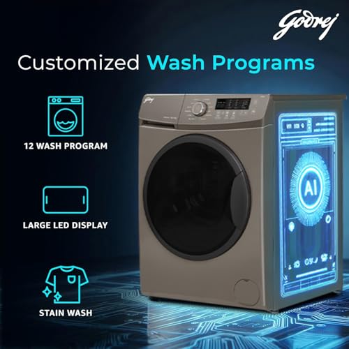 Godrej 8 Kg 5 Star, With AI Tech, Fully-Automatic Front Load Washing Machine (WFEON CRS 8012 5.0 FKEDM CNGR, Inbuilt Heater, Candy Grey)