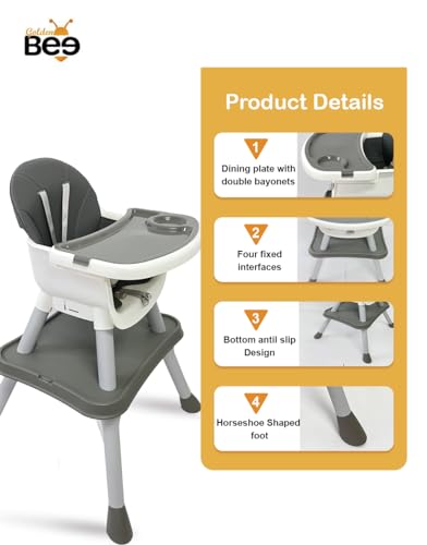 Golden Bee Multifunction 5 in 1 Baby High Chair, Lower & Booster Baby Chair with Food Tray, Study Table & Game Table, Certified for Safety, for Baby Boy & Girl from 6 Month to 5 Years (Grey)