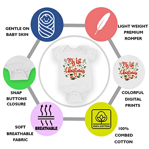 Happu – Christmas Romper – My First Xmas-K, For Infants, For Newborns, Unisex Baby Romper/Onesies/Dress, Half Sleeves, Envelope Neck, 8188-WH-3