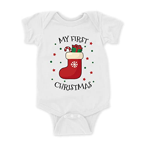 Happu – Christmas Romper – My First Xmas Socks, For Infants, For Newborns, Unisex Baby Romper/Onesies/Dress, Half Sleeves, Envelope Neck, 8207-WH-3